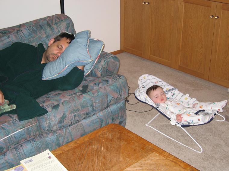 The day started out rough - Kenny work up around 5:30, so Eric fed him, then I put Kenny into his boucy seat where he took a nap