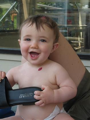 Barbara and little VeronicaAva and her birthday cake. She burned herself on the candle just after this picture was taken