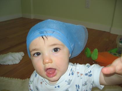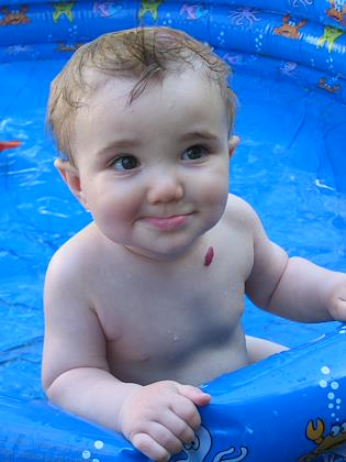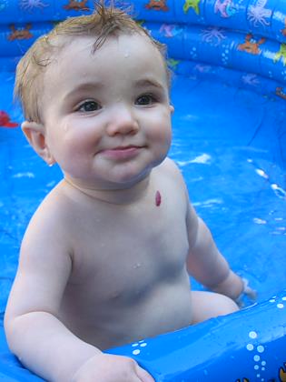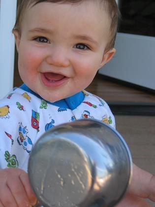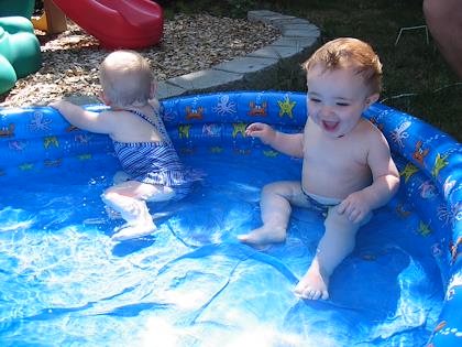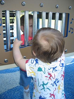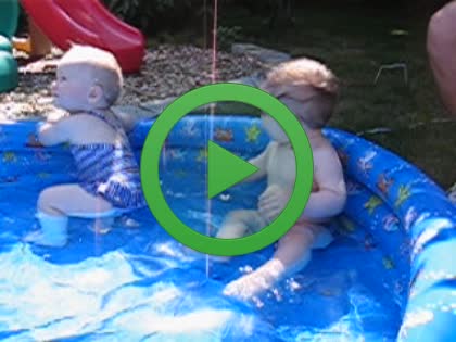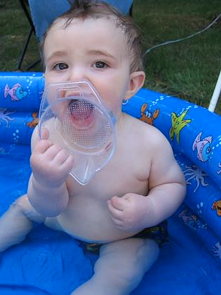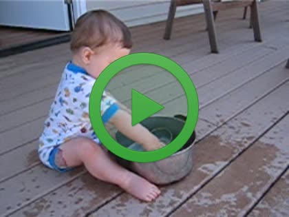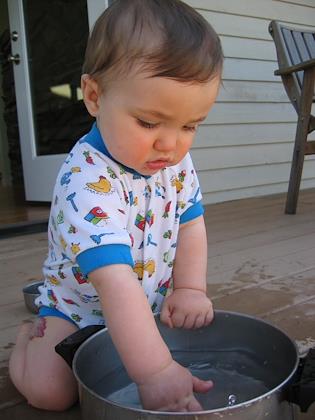 Kenny and Benji playing on the xylophoneKenny playing with a pot of water. He got pretty wet!