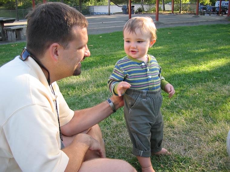 Daddy gives Kenny a wedgie - good thing he has diapers on!