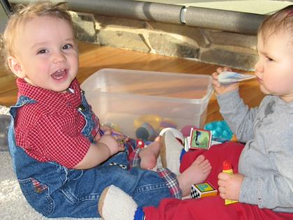 |  | |  | | What? No Nintendo? | | Playing with the shape sorter |