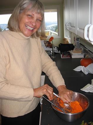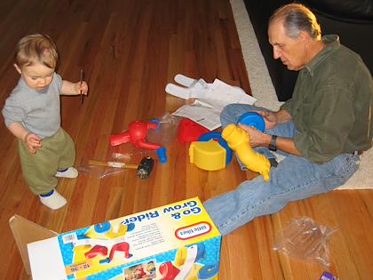 | Grandma shredding carrots for a carrot cake | | Kenny helps assemble his toy |