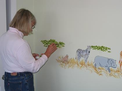 |  | |  | | It was a beautiful morning | | Ann painting a mural in Kenny's room |