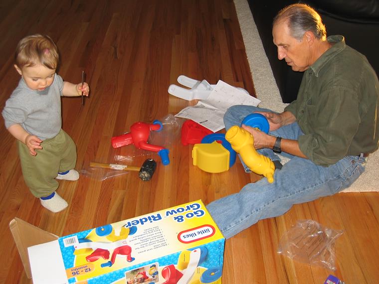Kenny helps assemble his toy