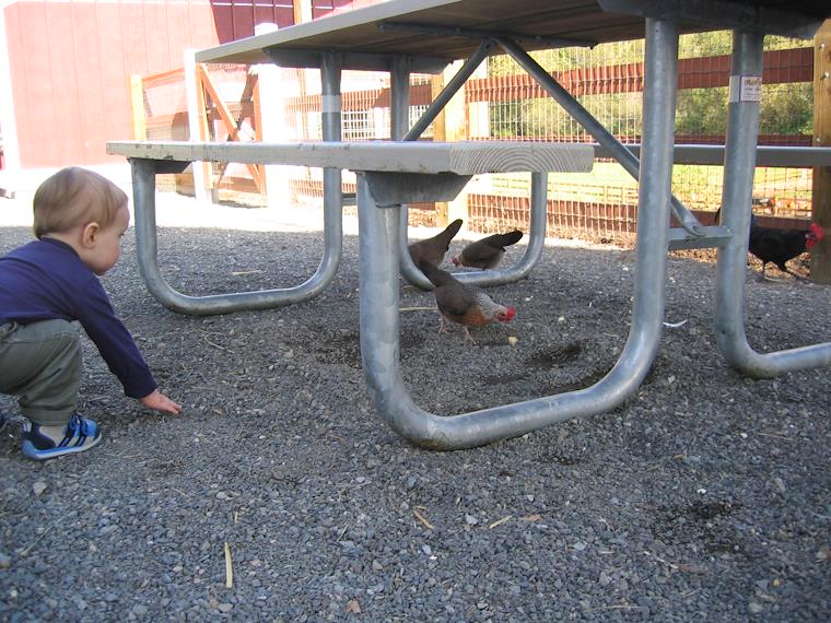 At the Kelsey Creek Park Family Festival - Kenny got a kick out of the chickens. They weren't so thrilled with him, though.