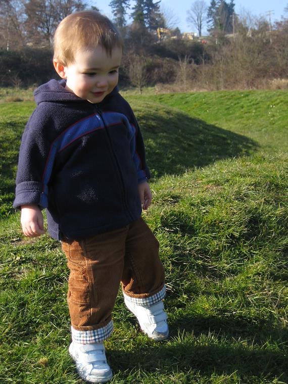 Playing at the earth sculpture at Luther Burbank park