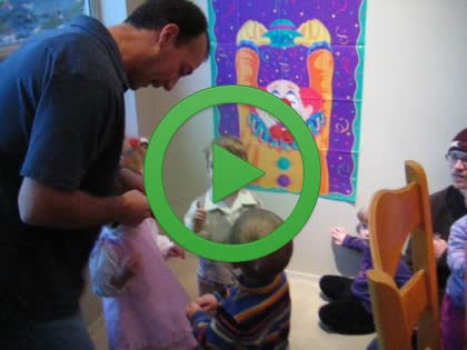 Kenny plays "pin the nose on the clown"