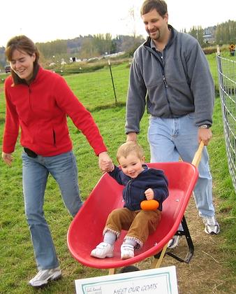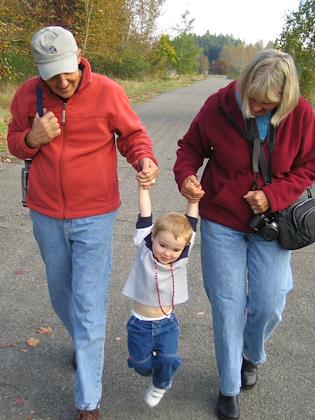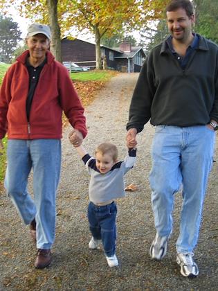 Walking with Daddy and Grandpa at Kelsey Creek