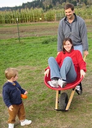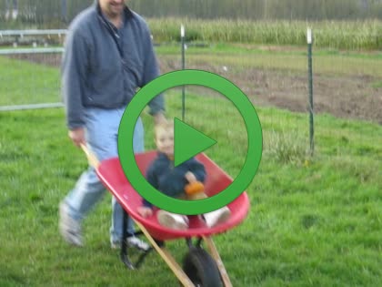 Kenny getting a wheelbarrow ride