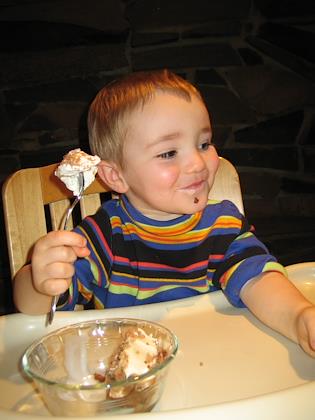 Attacking his birthday cake