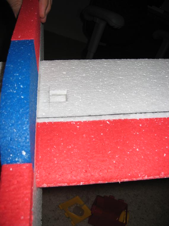 The hole is for two of the four servo's. It was scary cutting into the foam for the first time, but one gets used to it pretty quickly!
