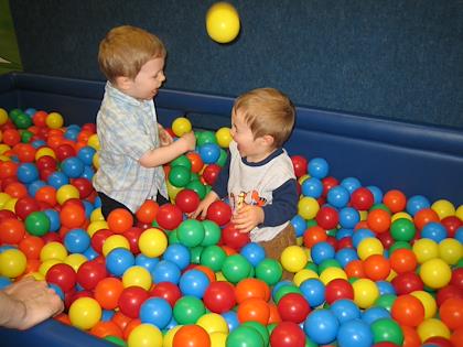 | Kenny loved playing in the ball pit | | Photo op - it was a very large party! |