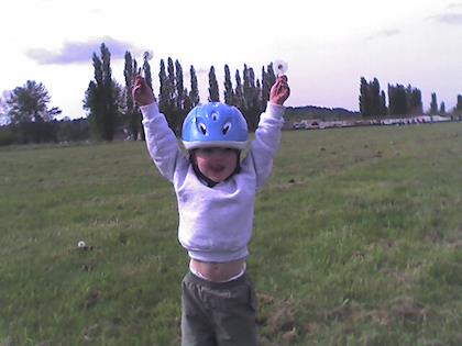 | He loved the helmet, and didn't want to take it off. | | Helicopters in our neighborhood |