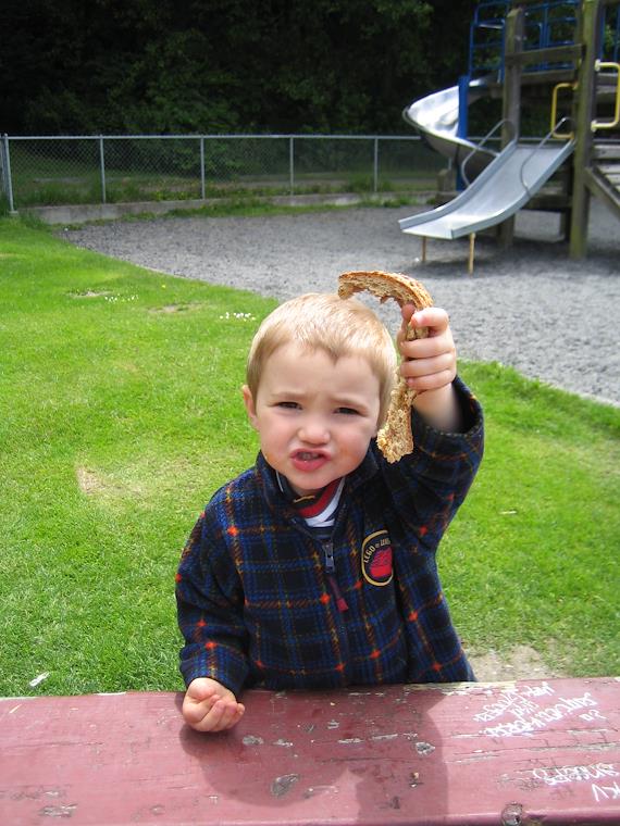 Kenny demolished his peanut butter sandwich