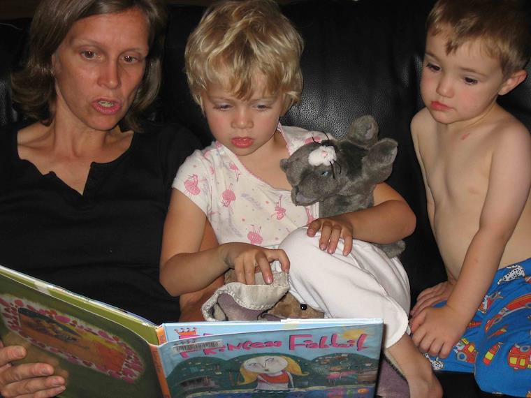 Judy reading a book to Sally and Kenny