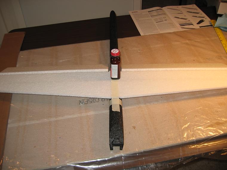 The I glue the bottom wing to the fuselage. It's very important to make the the wing is aligned properly, there is a lot of epoxy involved!