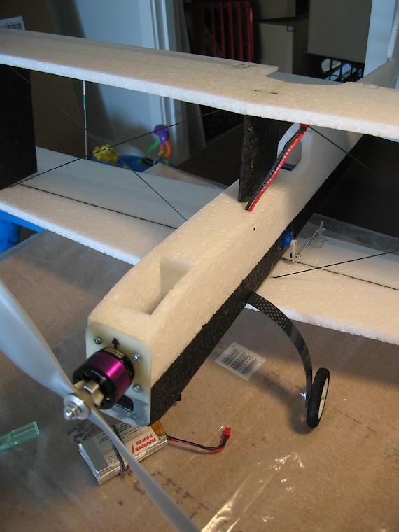 I also covered part of the opening here as well. On top of this near the center wing support, I fix a length of velcro for the batteries.