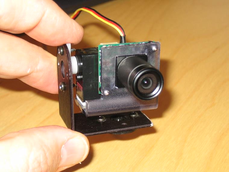 The metal bracket connecting the pan servo to the tilt I got from Lynxmotion. I cut off the part I did not need. Hopefully this mount will be sturdy enough. It weighs in at 68 grams.