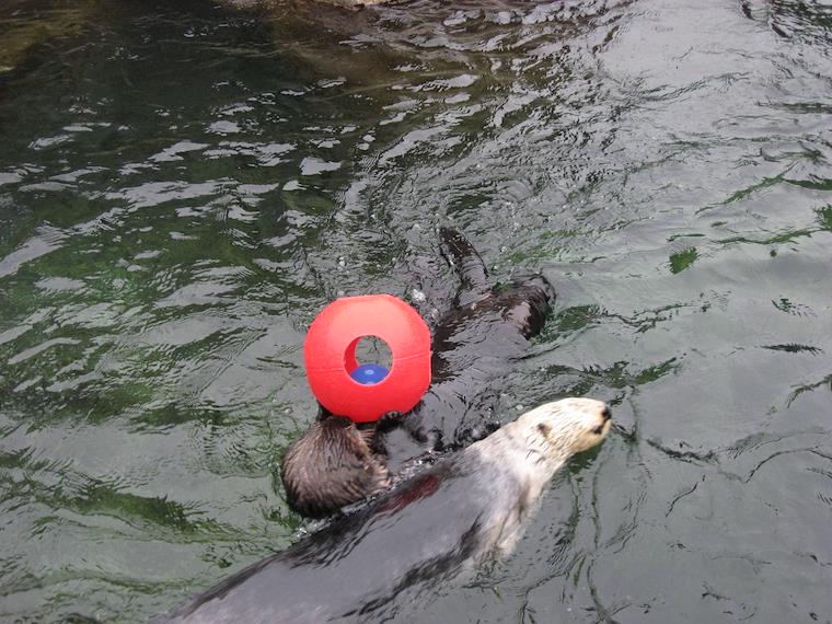 The otters had toys to play with