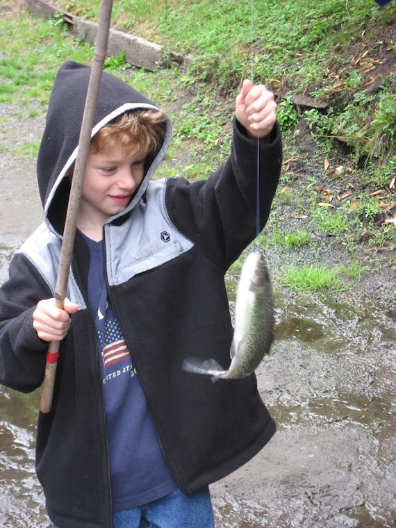 Fishing at Gold Creek trout farm with the Parmaceks - Max catches a trout