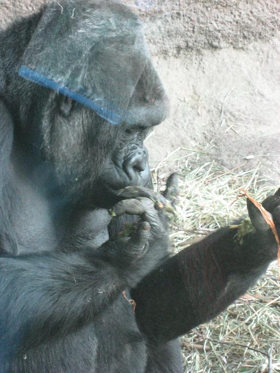 Apparently gorillas regurgitate what they've eaten and chew it again? Yech.