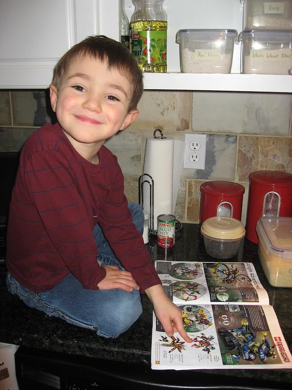 Kenny loves the catalog of lego toys that we got in the mail a few days ago. It's his constant companion.