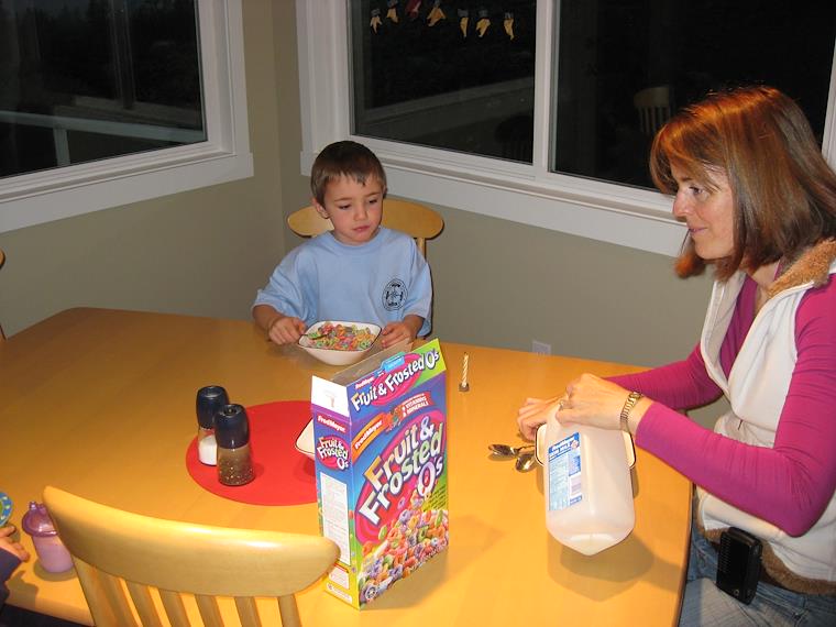 For Kenny's actual birthday, he got to have junk cereal for breakfast.