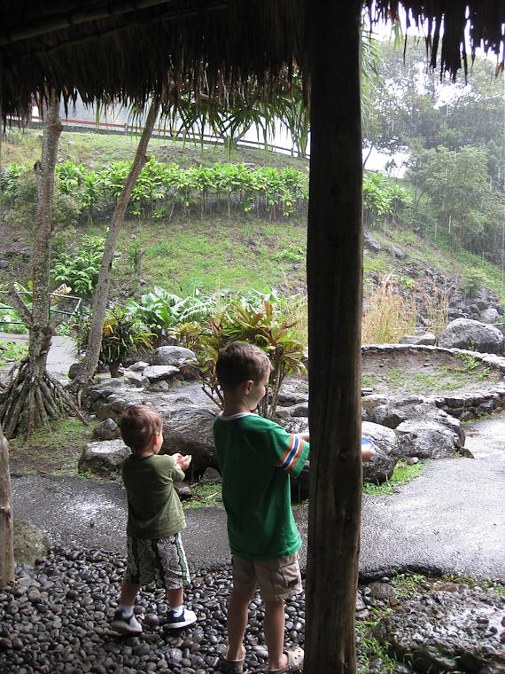 While we were there, it started to rain very hard. The kids liked it though. Warm hawaiian rain beats cold Seattle rain any day.