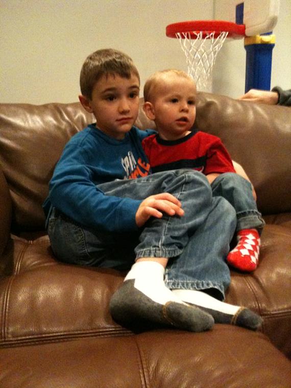 Kenny took to Henry when Angie and Justin came over for dinner.