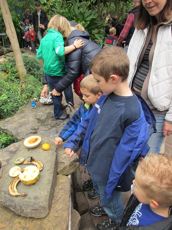Kenny and Peter try to tempt butterflys onto their hands. In the background, this poor three year old fell into a pond.