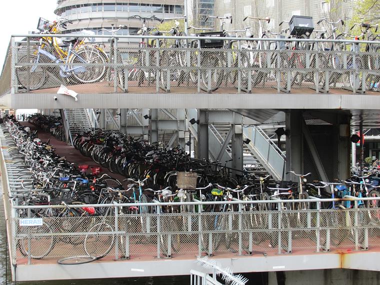 There are parking structures dedicated to bicycles.