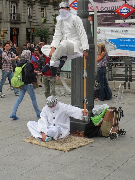 Lots and lots of street performers in the plaza Puerta del Sol. Many were doing a similar act to this, where there's a hidden metal rod used as a support