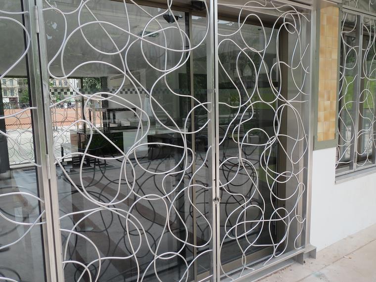 In Lyon - interesting metal grille work on a building in the Place Bellecour