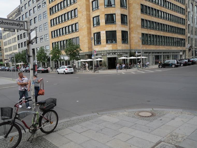 I took this picture to remind me of something unusual that I noticed in Berlin - huge, wide streets, with no pedestrian signaling at all, nor any other signals (stop signs, etc). I believe it was part of a policy to make everyone watch out and not rely on signals. Don't know how effective it was. It felt weird crossing the road.