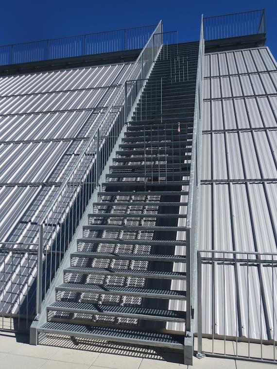 They used the stairway space very efficiently - instead of having landings on the steps to make it safer, they put railings halfway across at intervals