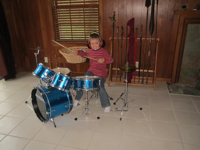 Peter enjoyed playing on the drum set