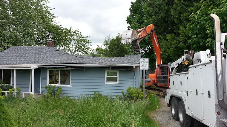 Jean and I took a bike ride down the Green River trail, and happened to come along on this house being demolished!