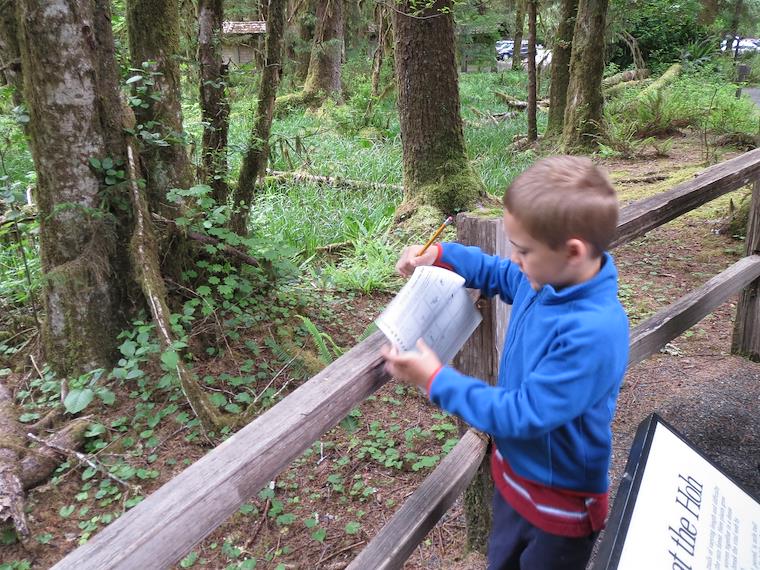 Hoh Rain Forest - Peter filling out a Junior Ranger workbook