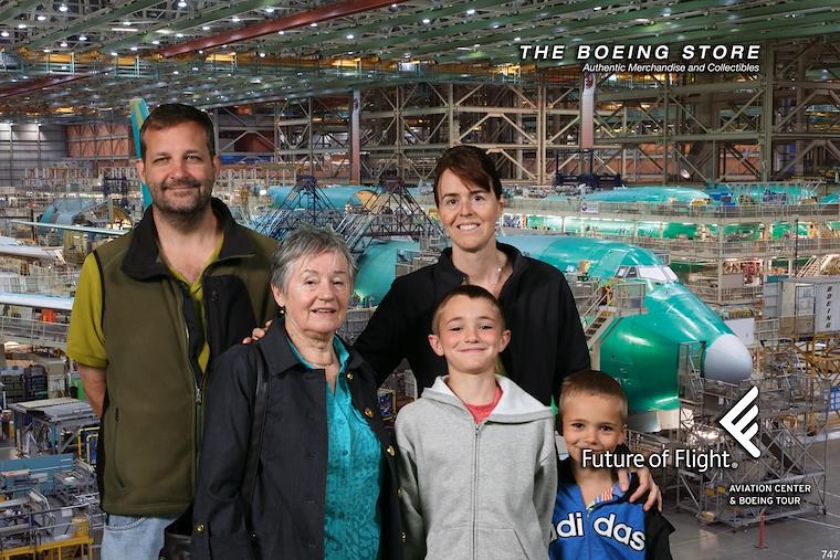 We also did the Boeing factory tour. You're not allowed to take pictures, but they do have a pretty sophisticated setup where you can have a picture taken, then you can pick the background, and they'll email it to you.