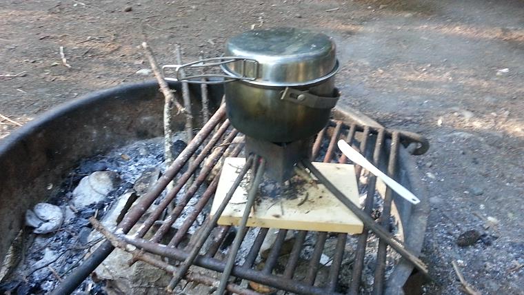 Cooking on a wood fire, using the Firebox Nano - basically a fancy box that you can make a little stick fire in.