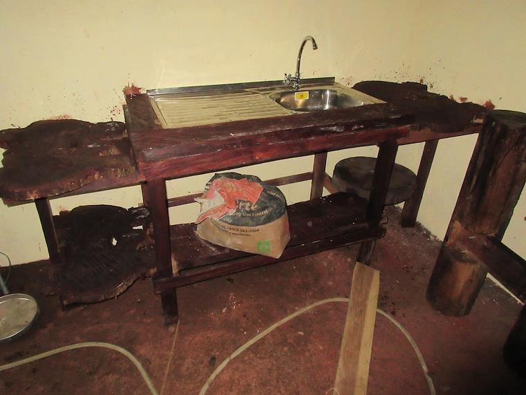 A guy was building more rustic furniture for additional cabins at Princessa De La Luna Lodge.