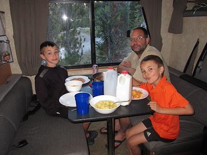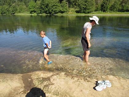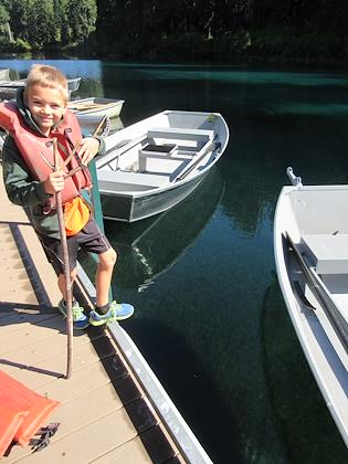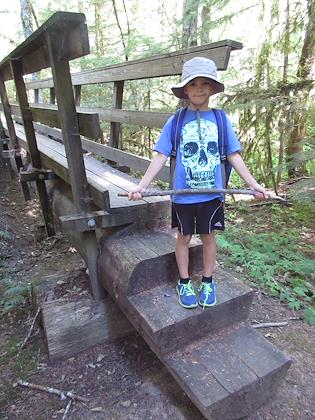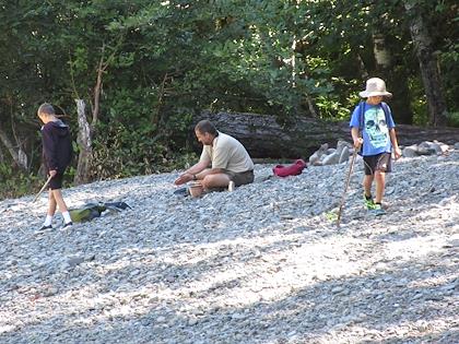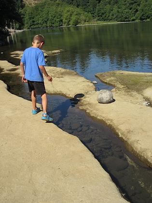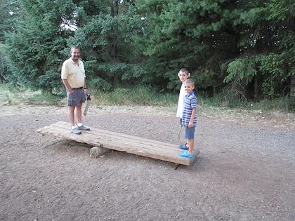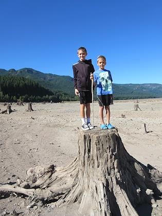 |  | |  | | One bonus - the kids found some great sticks, that they kept for the whole trip | | At Detroit Lake State Park, the water was way, way down. Swimming was out. It was like a moonscape. |