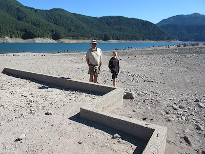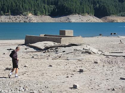 |  | |  | | Lots of piers, sitting on dry land | | Down the road at the Mongold area, the ruins of the housing that housed dam builders in the 1950s was visible |