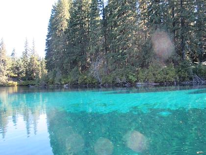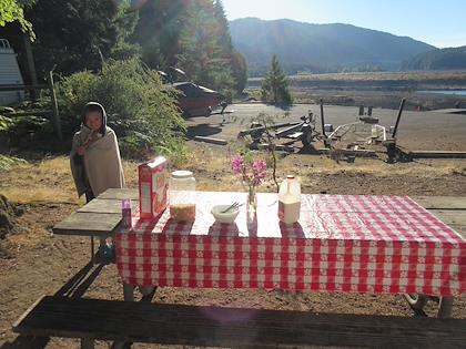 |  | |  | | Our breakfast table | | At Clear Lake, on the McKenzie Highway. The water is so clear because it's filled by underwater springs. |