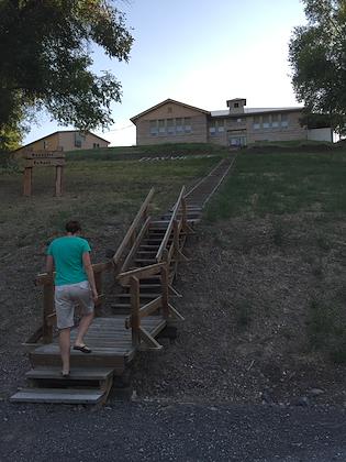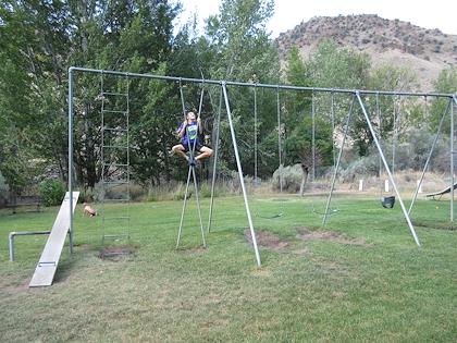 | This was the playground/park/town RV park in Mitchell, Oregon. We were going to stay the night, but decided it looked a little run down. It had some interesting playground equipment, though. | | Walking up to the school (still functioning) in Dayville |