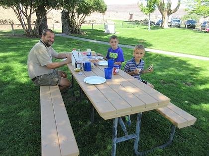 |  | |  | | We had a picnic lunch in the shade at the ranch house. It was so nice to see some green! | |