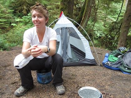 |  | |  | | Our campsite. We tried hard to stretch the rain flies properly, because it was supposed to rain again | | Hat hair! | |