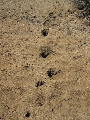|  | |  | | We got off track once on this part of the trail, and went about a mile out of our way. Luckily many places that could have been confusing had this kind of marker to make it easier. | | We saw these holes, all in a row, every often. Don't know what made them, though. |
