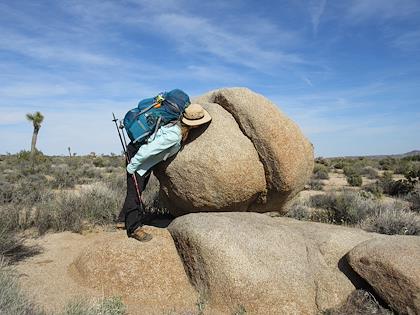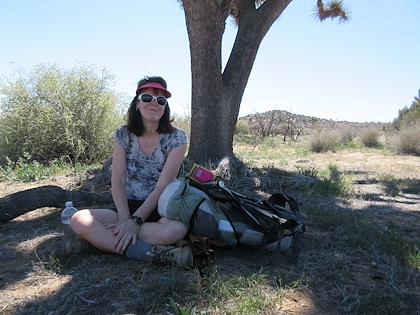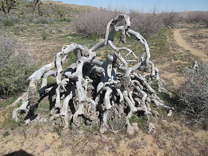 |  | |  | | A dead Joshua Tree. It looks like solid wood, but is surprisingly spongy. | | What little shade their was, came from the Joshua trees. I'm wearing my diy craft foam visor sunhat in this picture. |