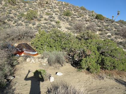 |  | |  | | Someone made the outline of of a lizard in a wash | | Day 2 campsite |